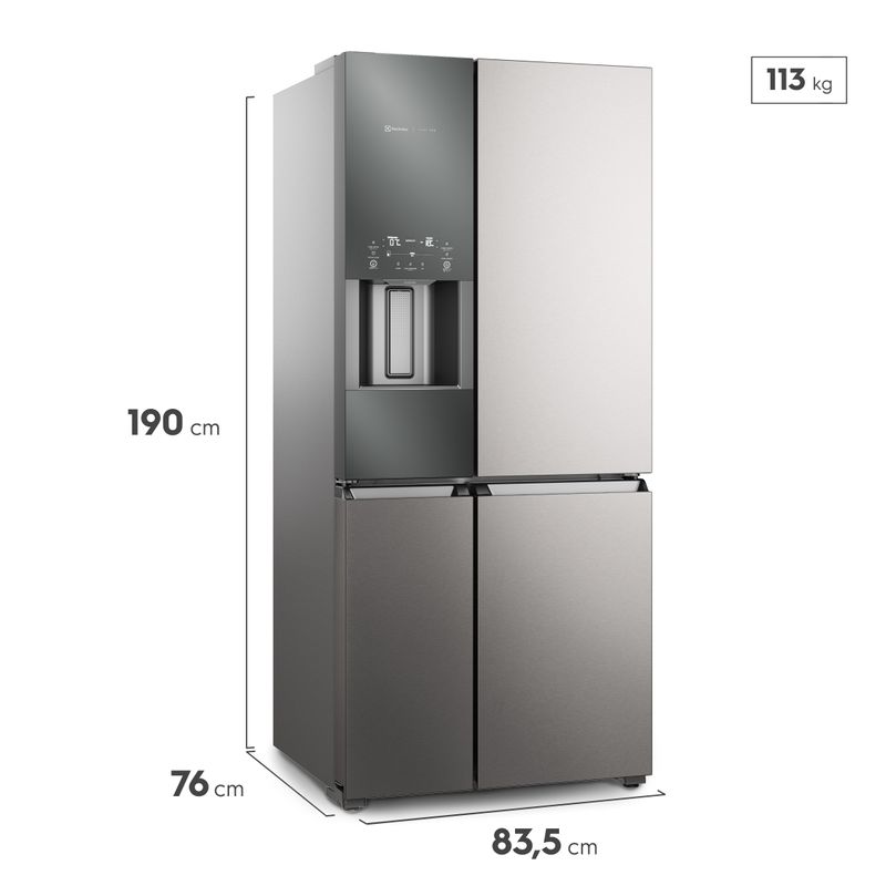 Geladeira Electrolux Frost Free Inverter 541L AutoSense e FlexiSpace 4 Portas Inox Espelhado Home Pro (IQ8WS)